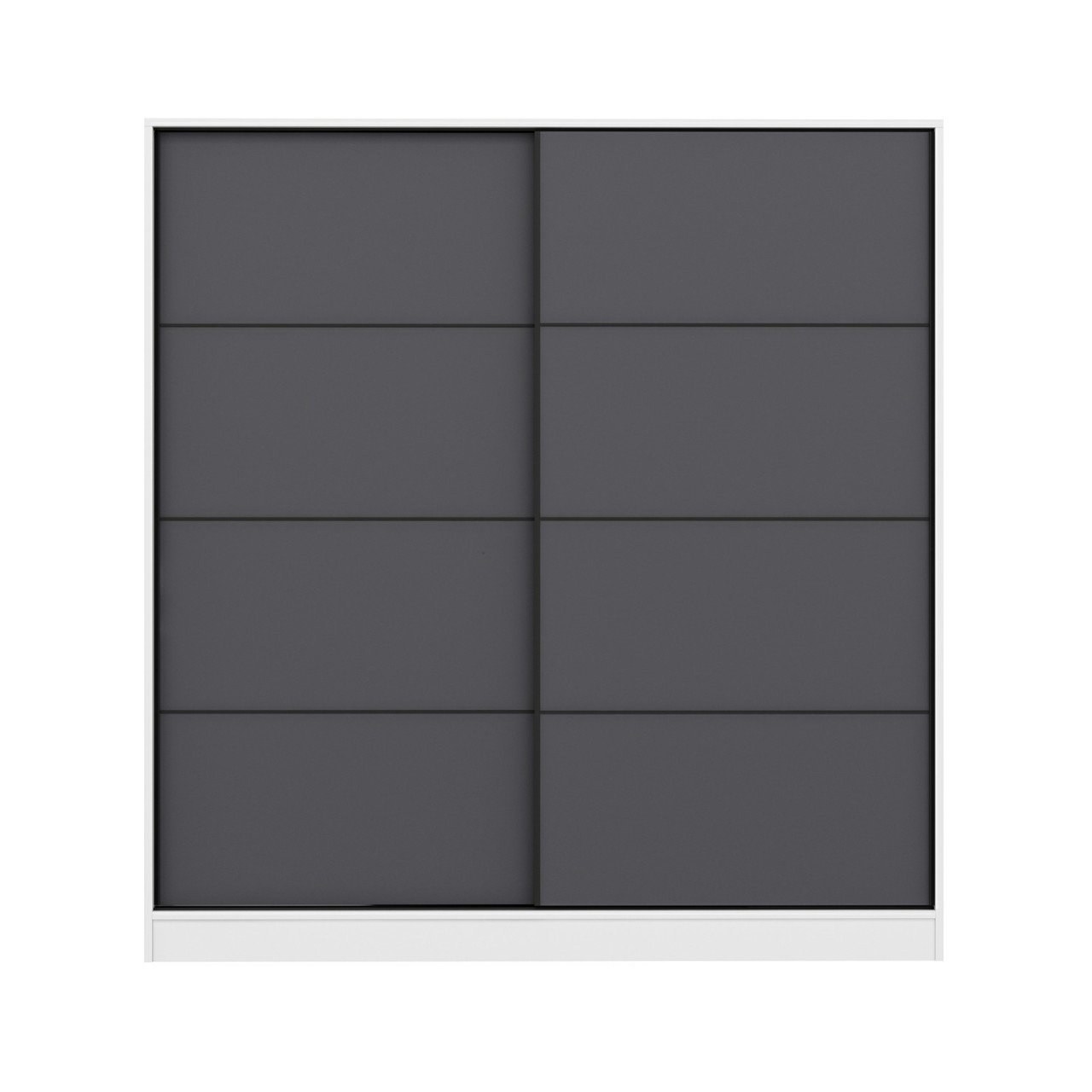 FUNZI LIVING 3963 garderobeskab, 2 skydelåger, 2 bøjlestænger, 2 skuffer – hvid/antracitgrå melamin