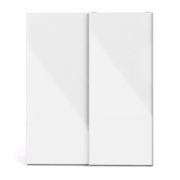 Her præsenterer vi et Firenze garderobeskab, der er lavet i hvid pulverlakeret og folieret spånplade. Det er designet med to skydelåger, to hylder og to bøjlestænger, så der er god plads til opbevaring af tøj. Her får du et garderobeskab, der er l